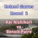 第19シードの錦織が地元フランスのペールを6-3、2-6、4-6、6-2、6-3のフルセットの末に破り、3回戦進出を決めました。