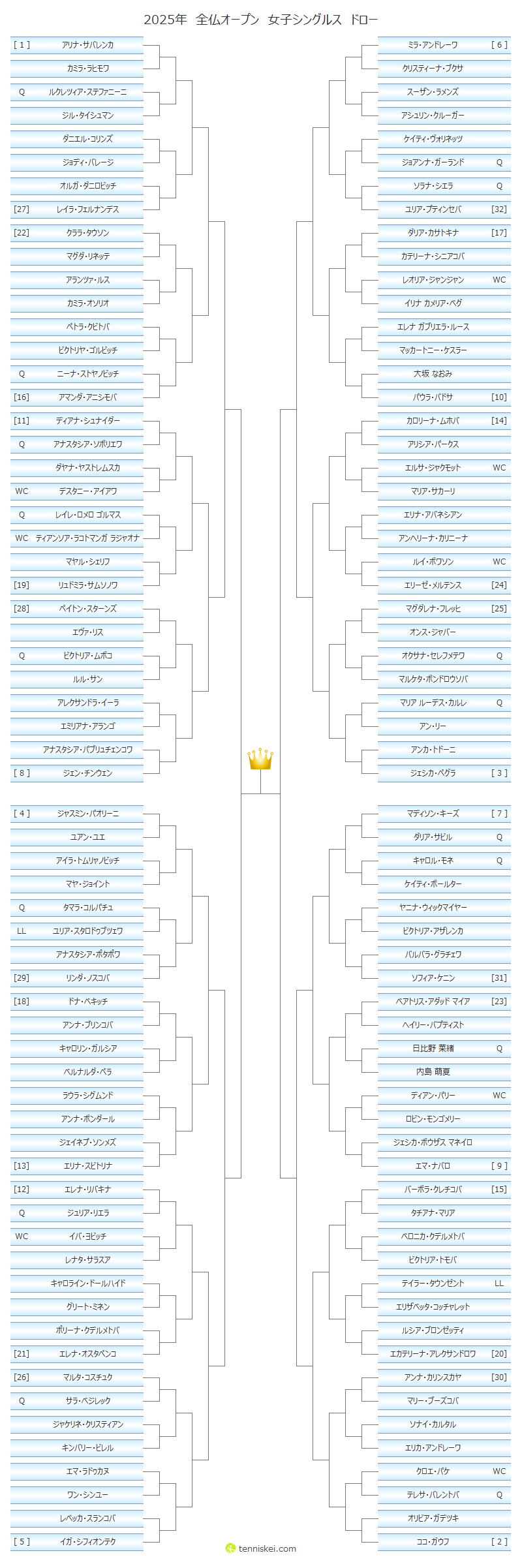 2025年全仏オープンの男子シングルスと女子シングルスの1回戦から決勝までの結果は、『 2025年 全仏オープンの結果(グランドスラム)』の記事をご覧ください。