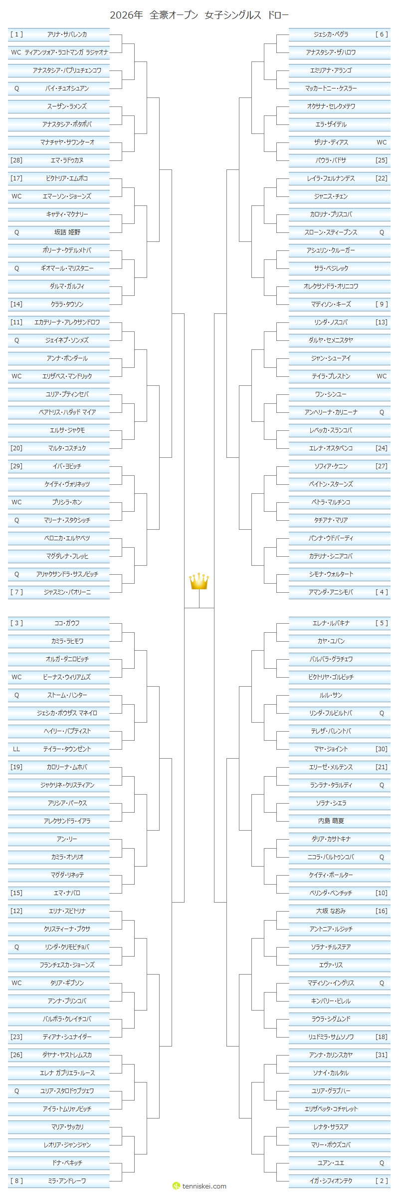女子では、サバレンカ、シフィオンテク、キーズ、ガウフらがひしめく層の厚いフィールドに、大坂なおみや新鋭アンドレーワら復帰組・若手が加わり、タイトル争いの行方が読みづらい「最もオープンな」グランドスラムとして語られている。